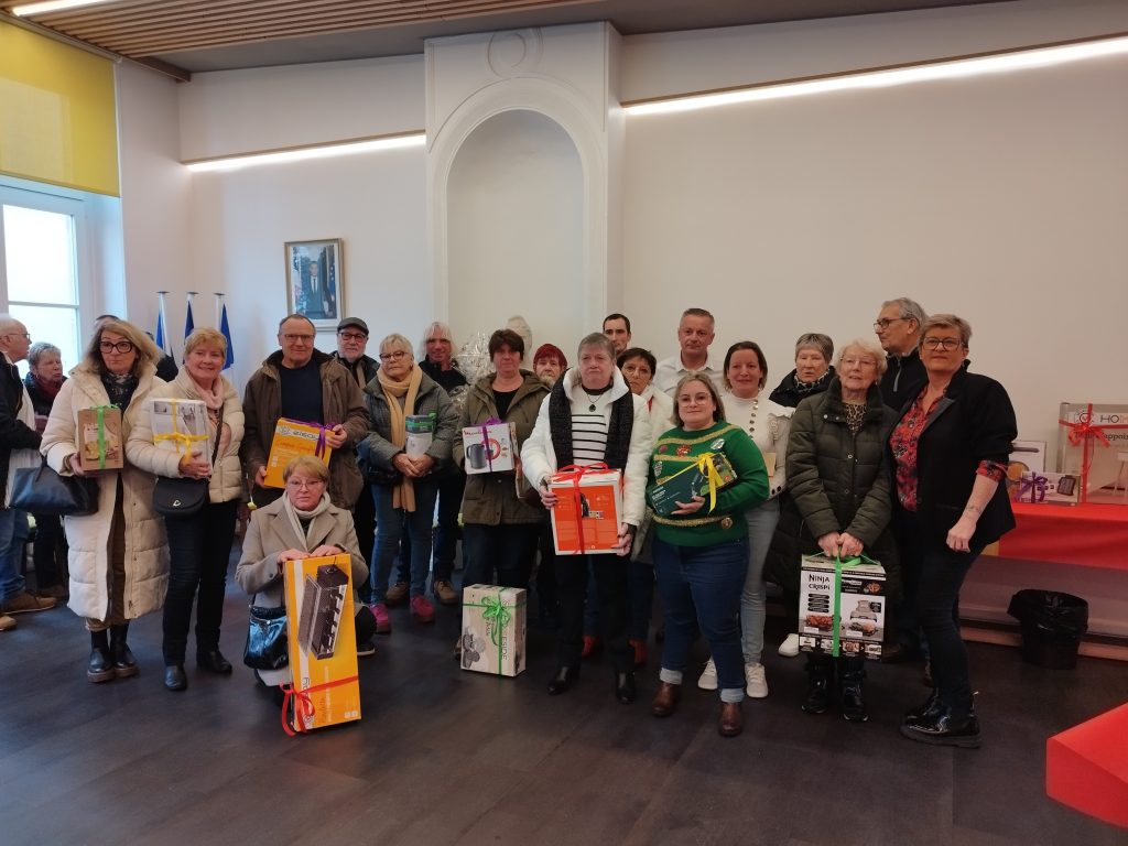 (Pour les personnes qui n’ont pas pu ĂŞtre prĂ©sentes et qui se sont excusĂ©es auprès de nos services, elles pourront venir rĂ©cupĂ©rer leur lot en mairie, aux horaires convenus.)
