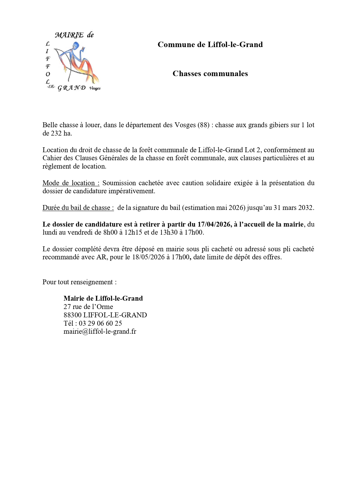 📂 Retrait du dossier : à partir du 17 avril 2026, à la mairie (horaires d’ouverture)