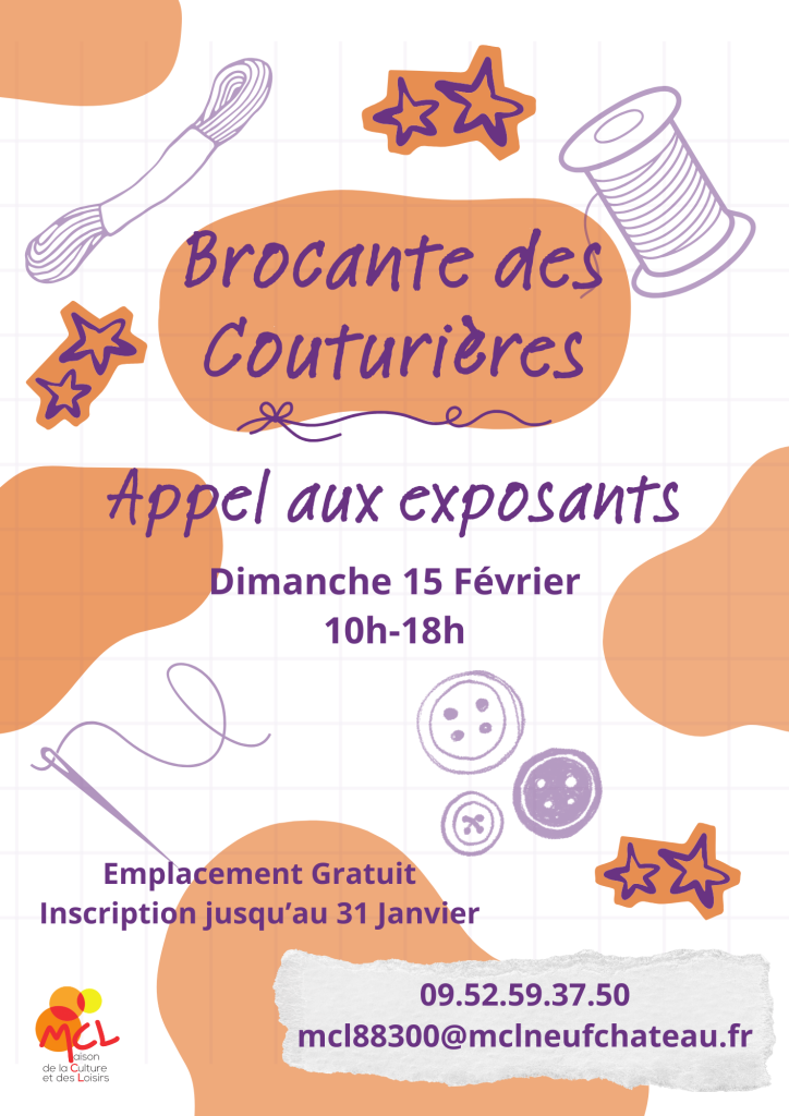 La M.C.L de Neufchâteau organise sa première brocante des couturières le dimanche 15 février 2026, de 10h à 18h, dans les locaux de la M.C.L.