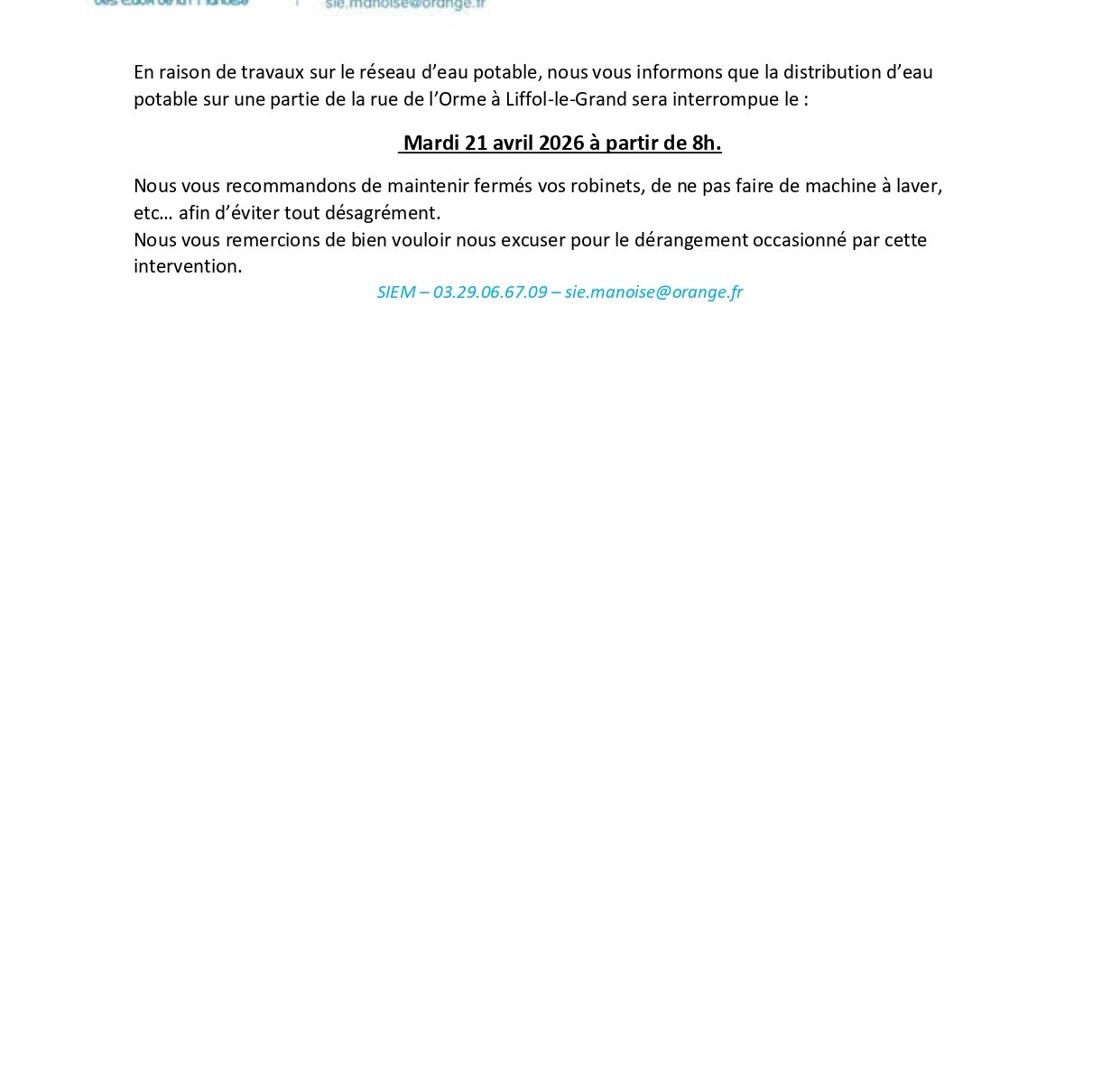 💧 Avis de coupure d’eau