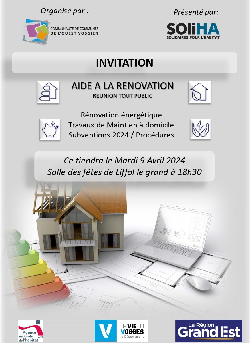 📌 Réunion publique d’information sur les aides à la rénovation le 9 avril 2024 à 18h30, à la salle des fêtes