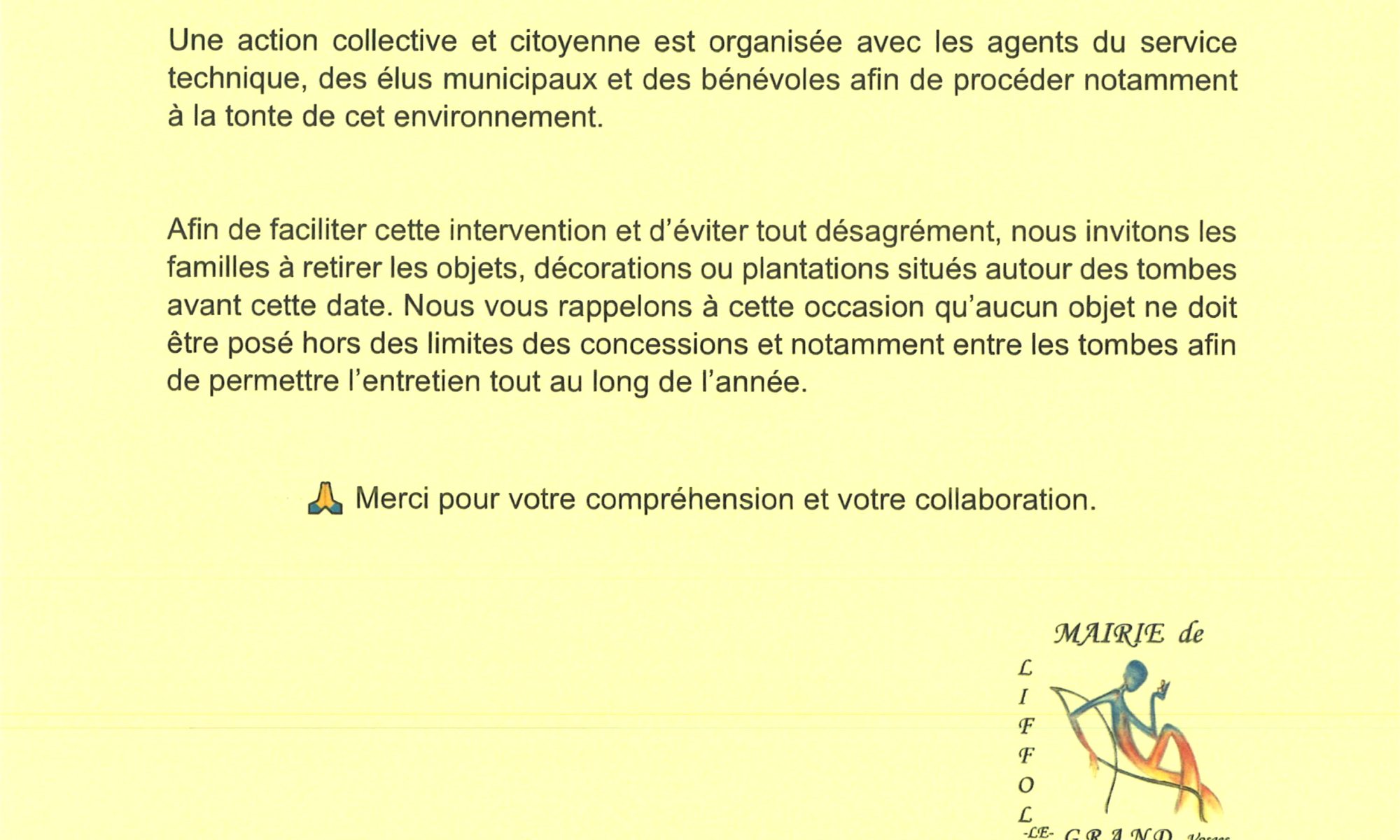 Entretien des espaces engazonnés et de la végétation du cimetière communal à partir du mardi 14 octobre