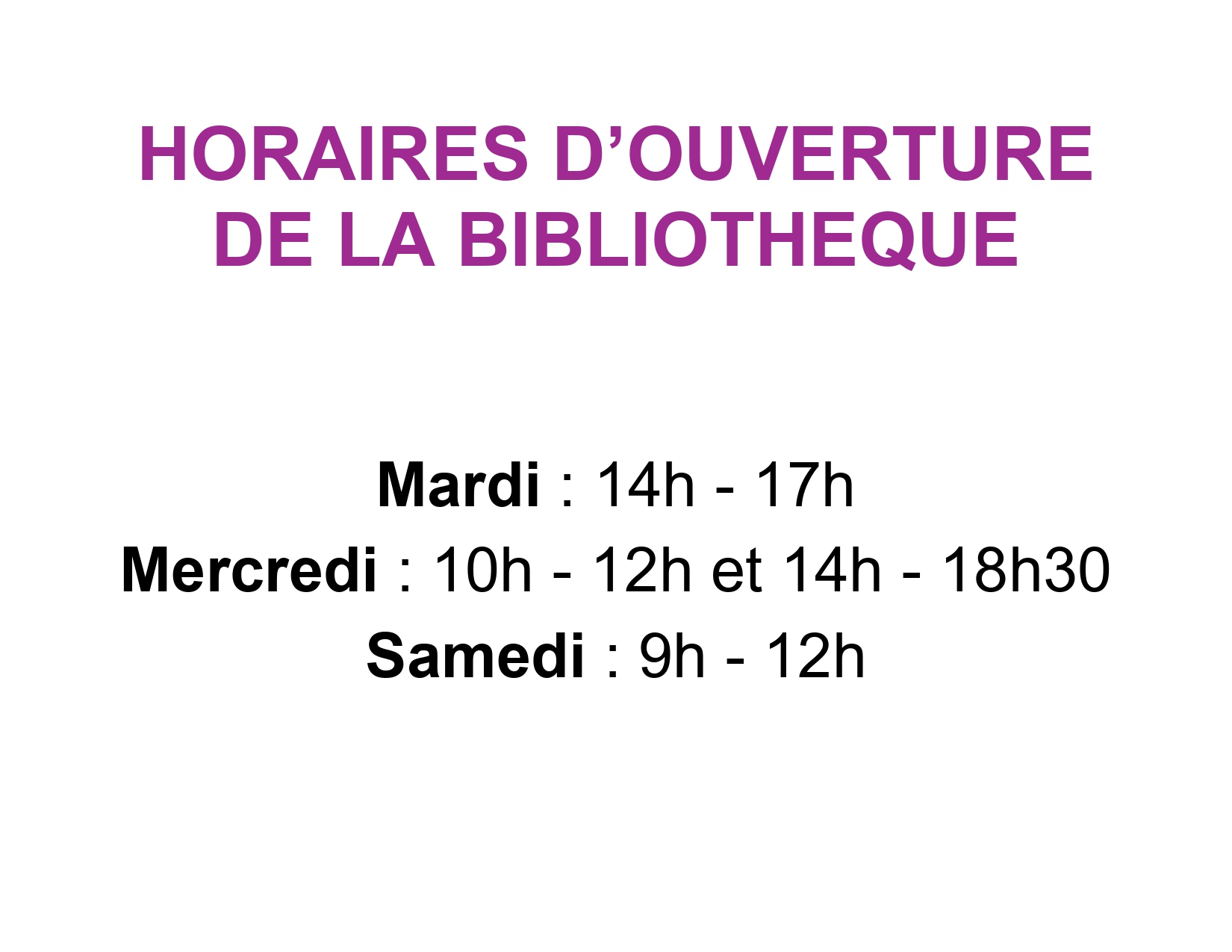 Horaires d’ouverture de la bibliothèque !