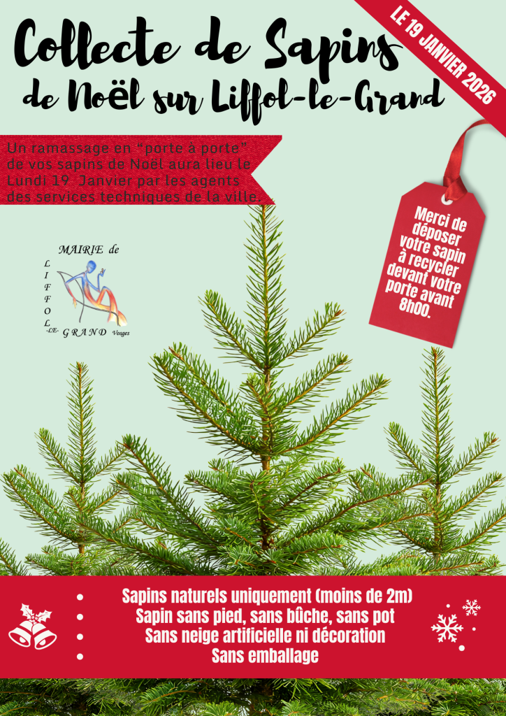 La collecte des sapins aura lieu à Liffol-le-Grand le lundi 19 janvier 2026.🎄✨